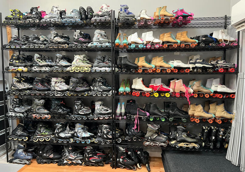 Start with the clinic if you are learning to skate or need a refresher. We have loaner skates & protective gear available.